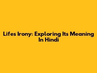 Life's Irony: Exploring Its Meaning In Hindi