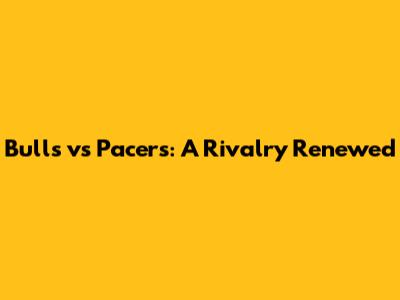 Bulls Vs Pacers: A Rivalry Renewed
