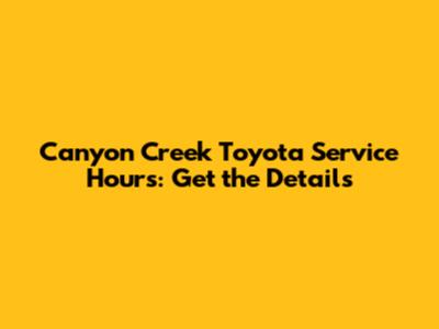 Canyon Creek Toyota Service Hours: Get The Details