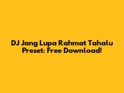 DJ Jang Lupa Rahmat Tahalu Preset: Free Download!