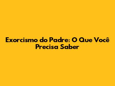 Exorcismo Do Padre: O Que Você Precisa Saber