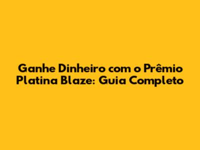 Ganhe Dinheiro Com O Prêmio Platina Blaze: Guia Completo