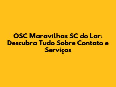 OSC Maravilhas SC Do Lar: Tudo Sobre Contato E Serviços