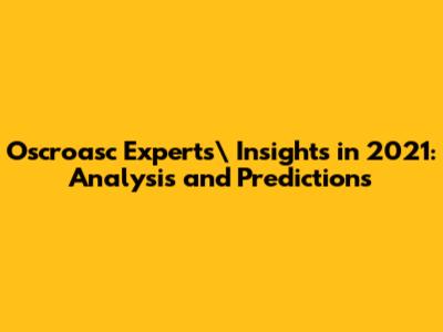 Oscroasc Experts' Insights In 2021: Analysis And Predictions