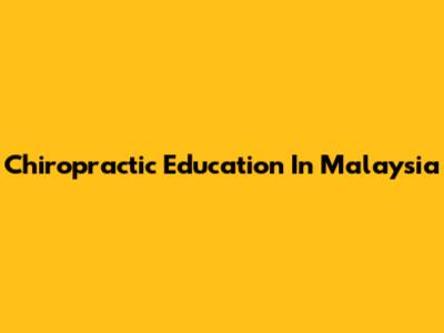 Chiropractic Education In Malaysia