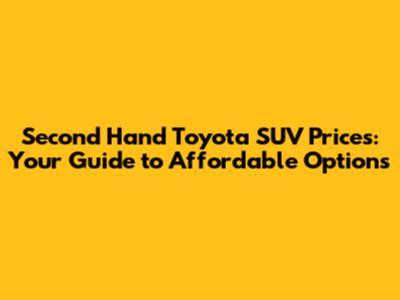 Second Hand Toyota SUV Prices: Your Guide To Affordable Options